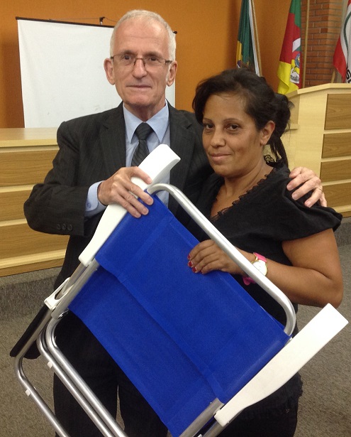 Dr. Luis Carlos Vasconcellos entregou a cadeira para Mara Martins, trabalhadora da Cotrijui de Ijuí.