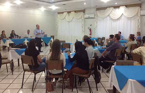 Rogério Gomes dos Reis abriu a reunião, formando a mesa com Rosane Simon, Vera Stefani da Silva, Paulo Pacheco e o assessor jurídico Cristian Horbe. “Agradecemos a presença da categoria neste processo de reorganização do Sindicato aqui na região e na formação de uma nova estrutura e de uma nova forma de direção desta entidade”. Em seguida a secretaria fez a leitura do edital de convocação e Paulo Pacheco coordenou a apreciação dos itens da pauta.