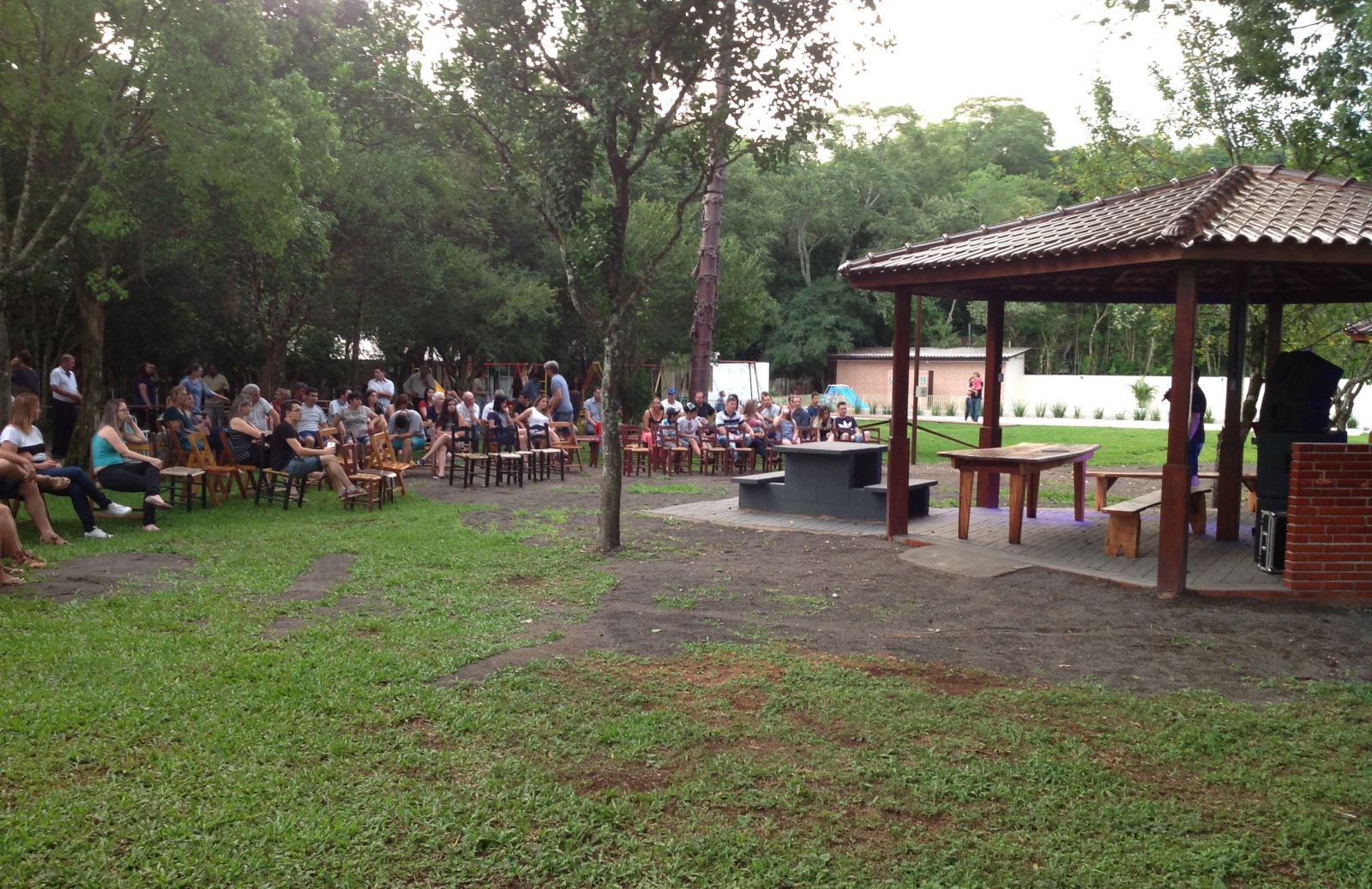 Cerca de 200 associados estiveram presentes ao ato de inauguração e de abertura da temporada da nova sede campestre do SindiComerciários, no último sábado (10). Localizada no Distrito de Santana, próxima ao Rio Potiribú, a sede possui ampla área verde, parquinho infantil, quiosques, churrasqueiras, cancha de bocha e piscina. “Entregamos aos nossos associados e à categoria apenas primeira etapa do projeto, para uso neste verão, abrindo a temporada”, explica o Presidente da entidade, Ari José Bauer. A sede contará no futuro com estacionamento maior, um ginásio multiuso, salão de festas e mais estruturas de churrasqueiras e quiosques.