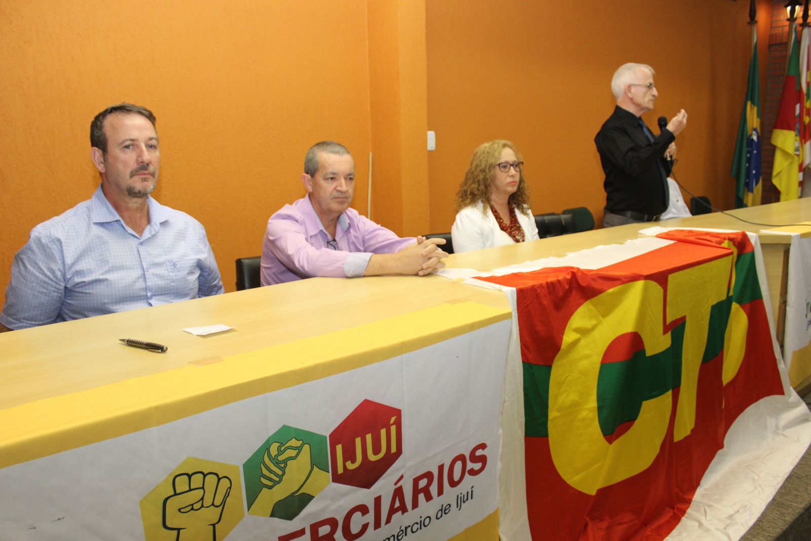 Na noite de sexta dia 04/05/2018 foi empossada a nova diretoria do Sindicato dos Empregados no Comercio de Ijuí pelo Presidente da Federação dos Empregados no Comercio Guiomar Vidor, que em sua fala destacou a atual conjuntura politica do País após a reforma trabalhista que trouxe prejuízos aos trabalhadores com a alteração de mais de 100 artigos da CLT, logo após Guiomar Vidor empossou diretoria do Sindicato dos Empregados no Comércio de Ijuí mandato 2018/2022, eleita em 24/25 de Janeiro desejando sucesso neste novo mandato. Após, empossado Ari Bauer agradeceu a confiança depositada em sua pessoa nas eleições onde a diretoria obteve 98% dos votos validos, isso deixa claro que a administração que esta a frente do Sindicato esta sendo reconhecida, falou ainda que a Diretoria precisa se comprometer juntamente com o Presidente na luta em defesa dos direitos da categoria tanto na cidade sede como nas bases para intensificar nossas lutas. Fez parte também da mesa, Abigail Pereira representando a CTB, Paulo Pacheco Coordenador da Eleição e o Adv. Luiz Carlos Vasconcellos.