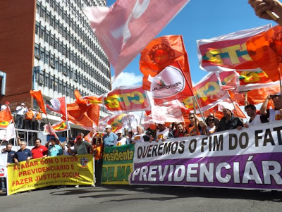Reunidas na frente do prédio do Instituto Nacional do Seguro Social (INSS), no centro de Porto Alegre, carregando faixas, cartazes e distribuindo panfletos à população, cujo slogan era “O Brasil contra o Fator Previdenciário”, as centrais demonstraram que estão unidas para convencer o governo da presidente Dilma a encontrar uma solução ao que o presidente da CTB-RS, Guiomar Vidor, considera “um dos maiores crimes cometidos contra a classe trabalhadora”.