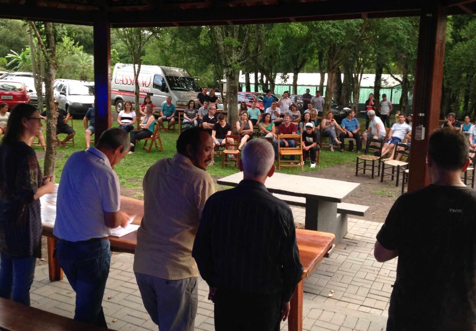 A categoria foi recepcionada pela direção e por funcionários e o ato foi coordenado pelo Assessor Contábil, Luiz Bauer. A mesa foi formada pelo Assessor Jurídico e ex-presidente do Sindicato Luiz Carlos Vasconcellos, a Diretora e ex-presidenta Rosane Simon, o Vice-presidente Luiz Oliveira e o Presidente Ari José Bauer.
