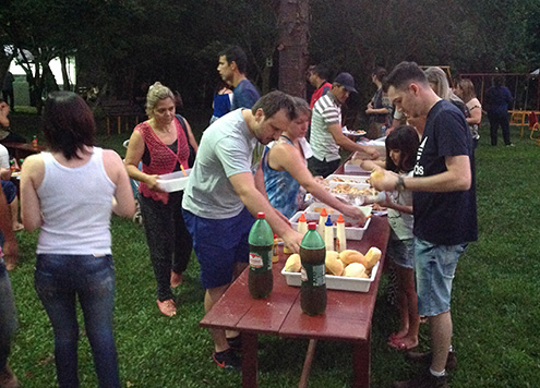 Cerca de 200 associados estiveram presentes ao ato de inauguração e de abertura da temporada da nova sede campestre do SindiComerciários, no último sábado (10). Localizada no Distrito de Santana, próxima ao Rio Potiribú, a sede possui ampla área verde, parquinho infantil, quiosques, churrasqueiras, cancha de bocha e piscina. “Entregamos aos nossos associados e à categoria apenas primeira etapa do projeto, para uso neste verão, abrindo a temporada”, explica o Presidente da entidade, Ari José Bauer. A sede contará no futuro com estacionamento maior, um ginásio multiuso, salão de festas e mais estruturas de churrasqueiras e quiosques.