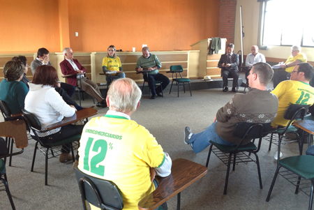 A exemplo do ocorrido recentemente em Santo Ângelo, uma nova reunião entre a Fecosul, dirigentes sindicais e as assessorias jurídicas dos Sindicatos Comerciários da região ocorreu na tarde desta sexta-feira na sede do SindiComerciários em Ijuí. A reunião retomou a pauta de Santo Ângelo e debateu ações políticas ou jurídicas sobre o avanço de outras categorias sobre a base comerciária, especialmente dos trabalhadores em cooperativas.